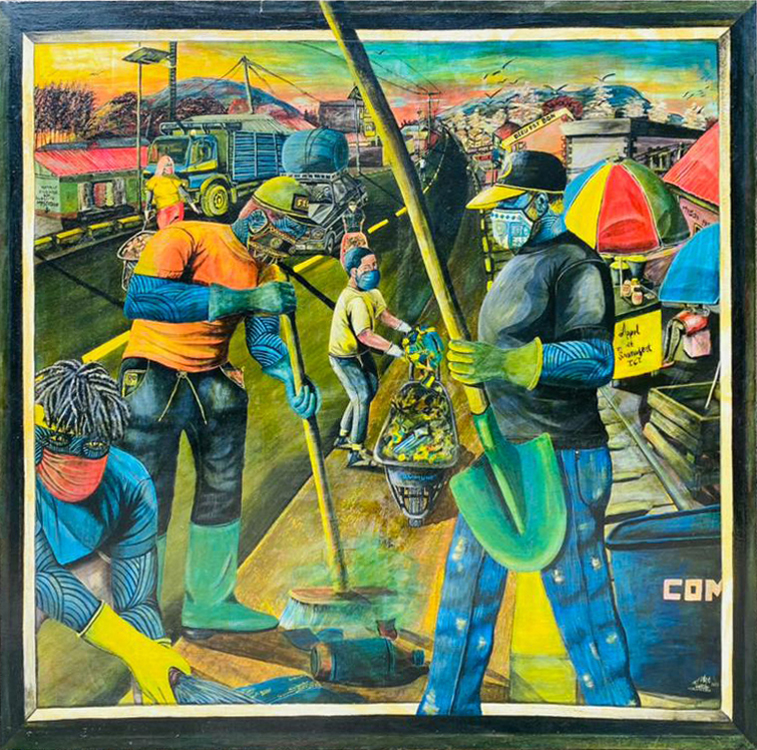 De cette expérience est née une œuvre picturale qui en conserve la mémoire. Réalisée dans une démarche contemporaine, la toile exprime la dimension sociale, humaine et environnementale de cette mobilisation, transformant l’événement en un symbole artistique pérenne. Ici, l’art contemporain africain affirme toute sa portée sociétale et sa spécificité créatrice, puisant dans une pluralité de sources d’inspiration.