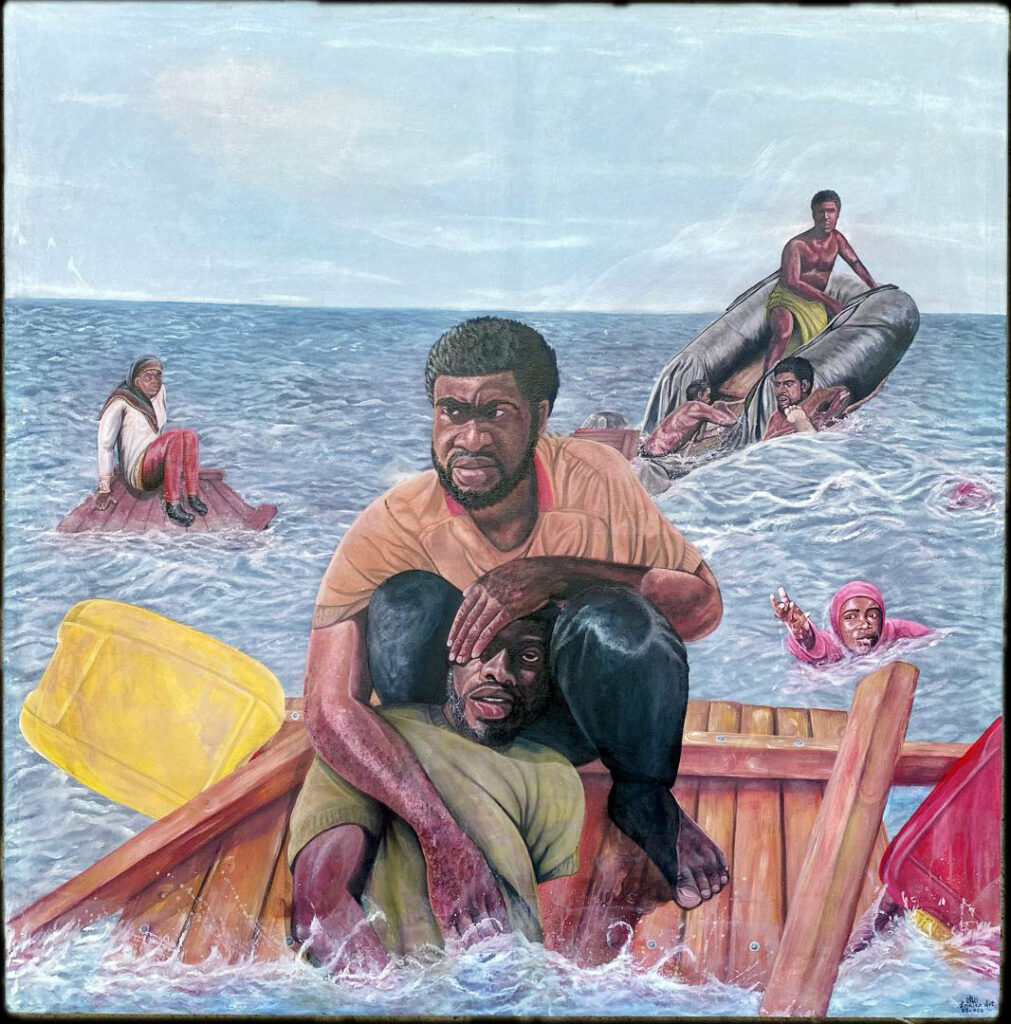 Abil Loskito aborde avec courage et sans compromis la question de l’émigration et de la migration. Ses tableaux mettent en lumière les défis et les dangers auxquels sont confrontés les migrants : traversées périlleuses en mer, exploitation dans des terres étrangères ou tragédies dans des déserts inhospitaliers. Par cette représentation directe et réaliste, l’artiste invite le spectateur à prendre conscience de réalités souvent ignorées ou invisibilisées.